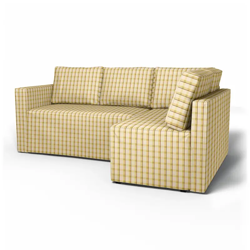 Ikea - F Gelbo Sofa Bed With Right Chaise Cover Picnic Check Sun Yellow Linen - Bemz