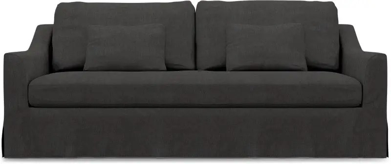 This model includes 6 covers: 1 frame cover which attaches with velcro, one bottom seat cushion cover, 2 back cushion covers and 2 smaller lumbar cushion covers. The cushion covers close with zippers. The cover has a floor-length skirt with corner pleats. This cover can only be used on the Färlöv 3-seater sofa from IKEA.