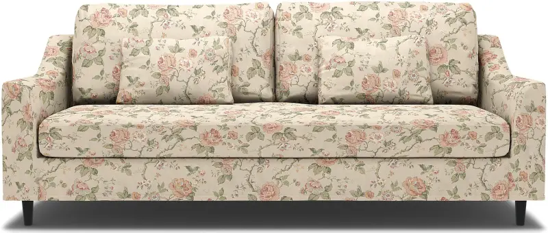 This cover includes 6 pieces: 1 frame cover which attaches with velcro at the seat base and armrests, 1 bottom seat cushion cover, 2 back cushion covers and 2 smaller lumbar cushion covers. This model comes with a neat fit frame cover that completely transform the shape of the sofa by exposing the sofa legs. The cushion covers close with zippers. This cover can only be used on the Färlöv 3-seater sofa from IKEA.