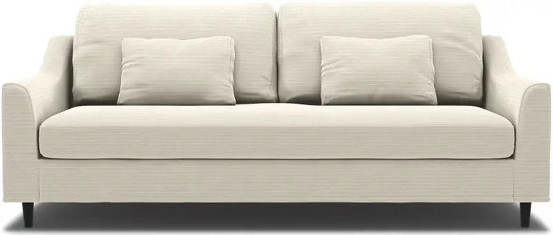 This cover includes 6 pieces: 1 frame cover which attaches with velcro at the seat base and armrests, 1 bottom seat cushion cover, 2 back cushion covers and 2 smaller lumbar cushion covers. This model comes with a neat fit frame cover that completely transform the shape of the sofa by exposing the sofa legs. The cushion covers close with zippers. This cover can only be used on the Färlöv 3-seater sofa from IKEA.