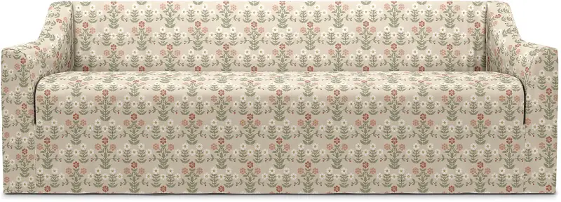 This style includes 1 piece and it’s designed to only fit the IKEA Färlöv 3 seater sofa. This model features one cover for the entire sofa, including the sofa frame and seat cushion / bench cushion. The cover envelopes the seat cushion, the fabric is tucked around the seat cushion and fastened along the backrest frame and armrests with velcro for a neat finish. The backrest features extra padding for added comfort. This look is designed for a pared back minimalist look, covers for the backrest and lumbar cushions are not included for this style. Fitting instructions: Remove the original covers along with the backrest and lumbar cushions, the seat / bench cushion can remain on the sofa. Drape the cover along the backrest and over the armrests. Gently pull the cover over the sofa frame. The cover is designed for the perfect neat fit, so adjust both sides of the backrest and armrests simultaneously. Adjust the seams of the cover so that they are aligned with the armrests and along the centre of the backrest. Smooth the backrest padding to avoid any bulking and to ensure that it lies flat against the back of the sofa. To secure the seat cushion, lift the seat cushion slightly, wrap and tuck the fabric around the back and sides of the seat cushion - creating an envelope or pocket for the seat cushion. The seams of the seat cover section align with the corners of the seat cushion. Velcro is attached to the sofa frame to keep the seat cushion and fabric in place. The cover is designed to skim the floor, adjust accordingly to avoid the fabric bunching and for a smooth, neat fitting look. The fabric should be completely smooth when properly attached.