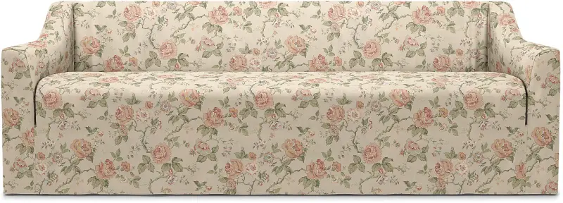 This style includes 1 piece and it’s designed to only fit the IKEA Färlöv 3 seater sofa. This model features one cover for the entire sofa, including the sofa frame and seat cushion / bench cushion. The cover envelopes the seat cushion, the fabric is tucked around the seat cushion and fastened along the backrest frame and armrests with velcro for a neat finish. The backrest features extra padding for added comfort. This look is designed for a pared back minimalist look, covers for the backrest and lumbar cushions are not included for this style. Fitting instructions: Remove the original covers along with the backrest and lumbar cushions, the seat / bench cushion can remain on the sofa. Drape the cover along the backrest and over the armrests. Gently pull the cover over the sofa frame. The cover is designed for the perfect neat fit, so adjust both sides of the backrest and armrests simultaneously. Adjust the seams of the cover so that they are aligned with the armrests and along the centre of the backrest. Smooth the backrest padding to avoid any bulking and to ensure that it lies flat against the back of the sofa. To secure the seat cushion, lift the seat cushion slightly, wrap and tuck the fabric around the back and sides of the seat cushion - creating an envelope or pocket for the seat cushion. The seams of the seat cover section align with the corners of the seat cushion. Velcro is attached to the sofa frame to keep the seat cushion and fabric in place. The cover is designed to skim the floor, adjust accordingly to avoid the fabric bunching and for a smooth, neat fitting look. The fabric should be completely smooth when properly attached.