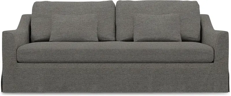 This model includes 6 covers: 1 frame cover which attaches with velcro, one bottom seat cushion cover, 2 back cushion covers and 2 smaller lumbar cushion covers. The cushion covers close with zippers. The cover has a floor-length skirt with corner pleats. This cover can only be used on the Färlöv 3-seater sofa from IKEA.