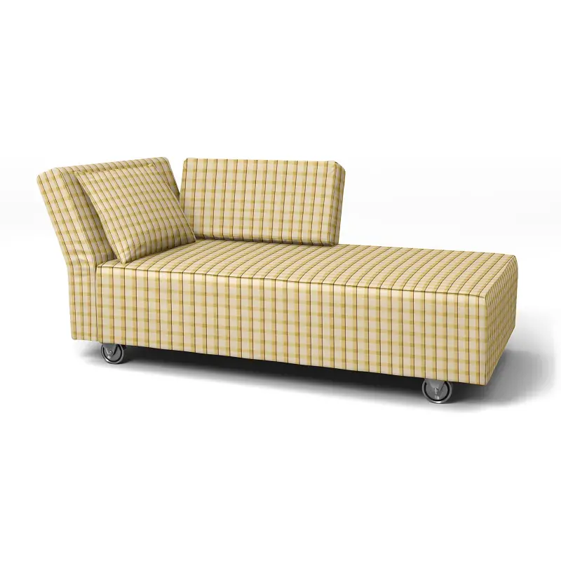 Ikea - Falsterbo Chaise With Left Armrest Cover Picnic Check Sun Yellow Linen - Bemz