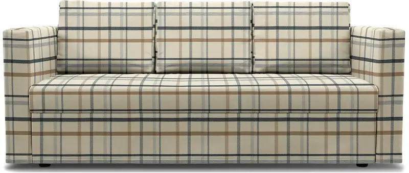 Our IKEA Friheten 3 seater sofa bed cover fits easily over the non-removable IKEA cover. It includes 7 individual pieces: 1 seat cover, 1 back cover, 2 armrest covers, 3 back cushion covers. Fitting instructions: The armrests need to be dismantled to put the cover on. Please note that our IKEA Friheten 3 seater bed sofa cover can not be used on IKEA FRIHETEN 3 seater leather sofa beds.