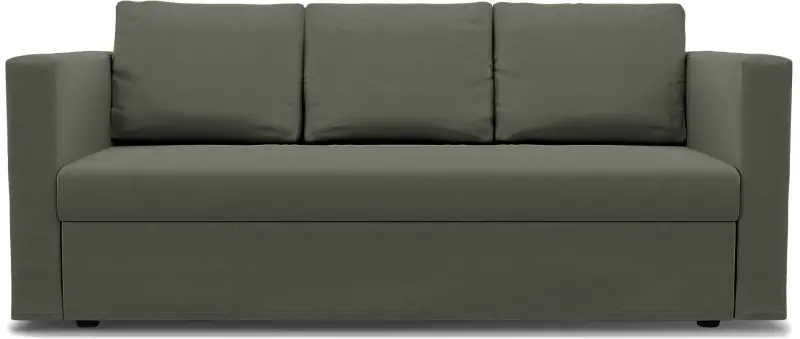 Our IKEA Friheten 3 seater sofa bed cover fits easily over the non-removable IKEA cover. It includes 7 individual pieces: 1 seat cover, 1 back cover, 2 armrest covers, 3 back cushion covers. Fitting instructions: The armrests need to be dismantled to put the cover on. Please note that our IKEA Friheten 3 seater bed sofa cover can not be used on IKEA FRIHETEN 3 seater leather sofa beds.