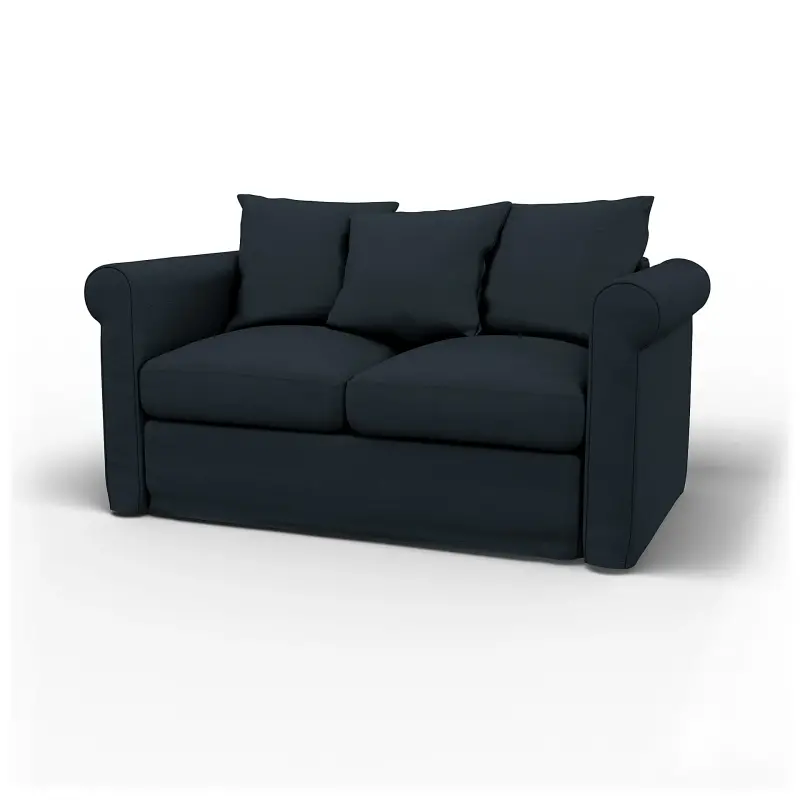 This cover is custom-made to fit the IKEA Grönlid 2 seater sofa. Featuring classic piped edges, it's designed to look almost exactly like the original cover. It includes 9 pieces: 1 back frame cover, 1 front panel cover, 2 seat cushion covers, 3 back cushion covers and 2 armrest covers. The back cushion covers are reversible. Fitting instructions: This model needs to be disassembled before you fit your new cover. Remove old cover first. About this model: The Grönlid sofa looks similar to the IKEA Ängby or Ektorp sofas, so be sure to check you've selected the right cover for your model. The Grönlid is easy to distinguish by its scatter back cushions and black rubber feet.