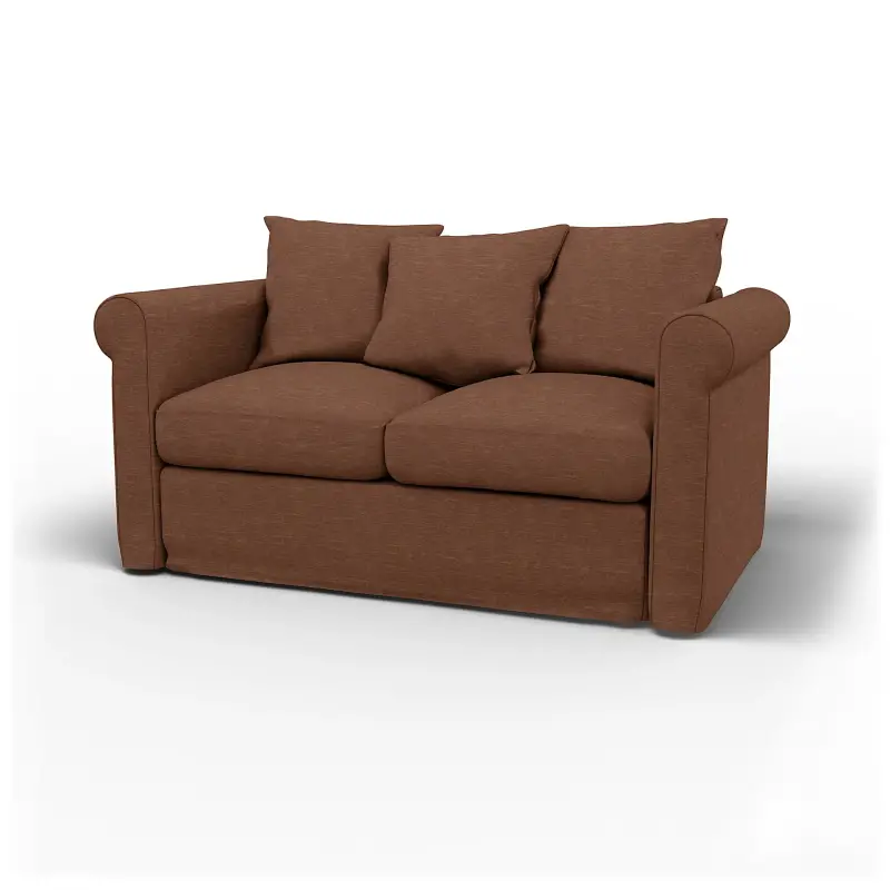 This cover is custom-made to fit the IKEA Grönlid 2 seater sofa. Featuring classic piped edges, it's designed to look almost exactly like the original cover. It includes 9 pieces: 1 back frame cover, 1 front panel cover, 2 seat cushion covers, 3 back cushion covers and 2 armrest covers. The back cushion covers are reversible. Fitting instructions: This model needs to be disassembled before you fit your new cover. Remove old cover first. About this model: The Grönlid sofa looks similar to the IKEA Ängby or Ektorp sofas, so be sure to check you've selected the right cover for your model. The Grönlid is easy to distinguish by its scatter back cushions and black rubber feet.