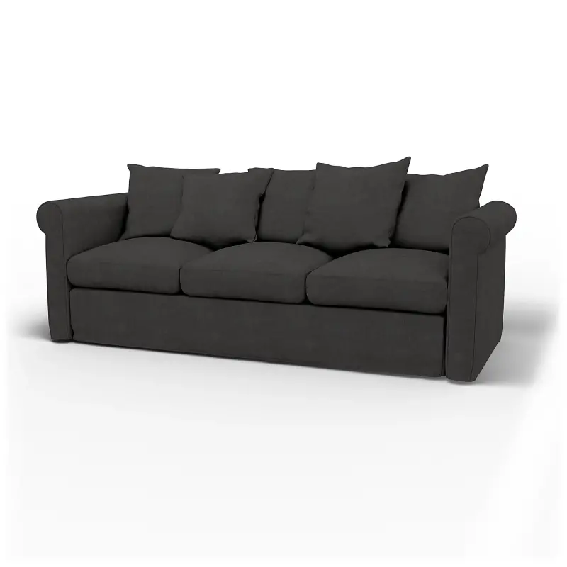 This cover is custom-made to fit the IKEA Grönlid 3 seater sofa. Featuring classic piped edges, it's designed to look almost exactly like the original cover. It includes 12 individual pieces: 1 back frame cover, 1 front panel cover, 3 seat cushion covers, 5 back cushion covers and 2 armrest covers. The back cushion covers are reversible. Fitting instructions: this model needs to be disassembled before you fit your new cover. Remove old cover first. About this model: the Grönlid sofa looks similar to the IKEA Ängby or Ektorp sofas, so be sure to check you've selected the right cover for your model. The Grönlid is easy to distinguish by its scatter back cushions and black rubber feet.