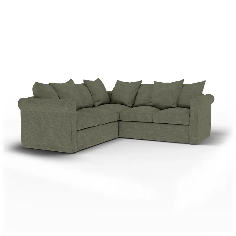 This cover is custom-made to fit the IKEA Grönlid 4 seater corner sofa. Featuring classic piped edges, it's designed to look almost exactly like the original cover. 20 pieces - 2 sofa front cover, 2 sofa back cover, 1 corner part, 2 armrest cover, 8 back cushion covers, 4 seat cushion covers and 1 corner seat cover Fitting instructions: This model needs to be disassembled before you fit your new cover. Remove old cover first. About this model: The Grönlid sofa looks similar to the IKEA Ängby or Ektorp sofas, so be sure to check you've selected the right cover for your model. The Grönlid is easy to distinguish by its scatter back cushions and black rubber feet.