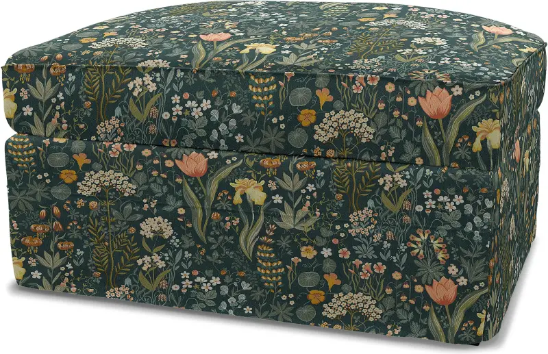 Ikea - Gr Nlid Footstool With Storage Cover Blomsterhav Dark Bemz X Bor Stapeter Collection - Bemz