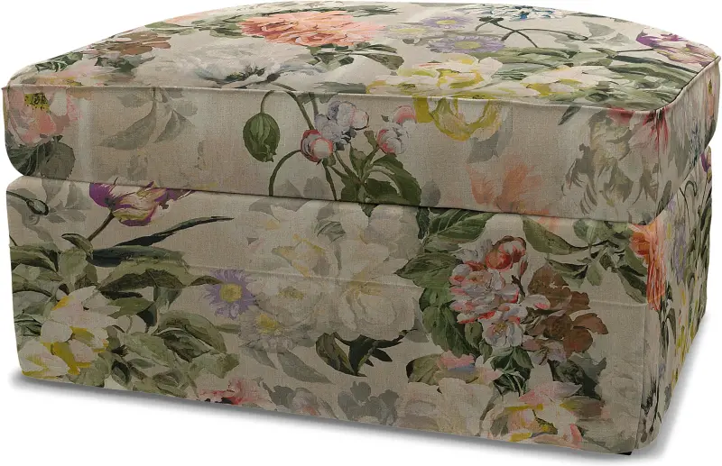 Ikea - Gr Nlid Footstool With Storage Cover Delft Flower - Tuberose Linen - Bemz