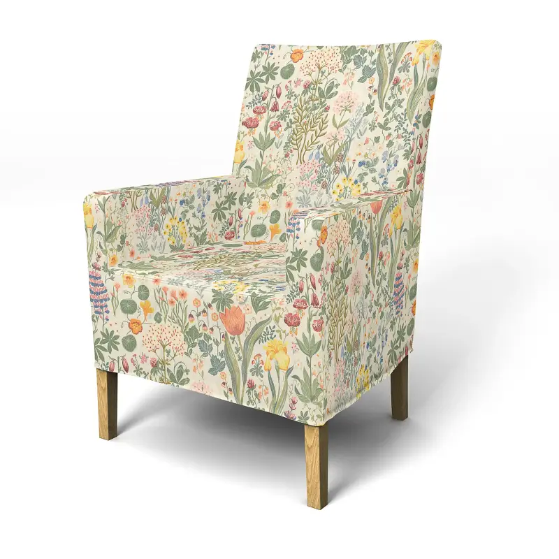 Ikea - Henriksdal Chair Cover W Armrest Medium Length Skirt Blomsterhav Light Bemz X Bor Stapeter Collection - Bemz