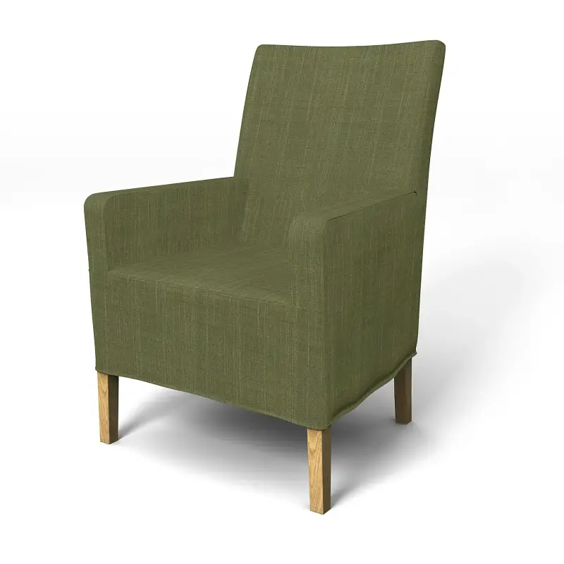Ikea - Henriksdal Chair Cover W Armrest Medium Length Skirt Moss Green Boucl Texture - Bemz