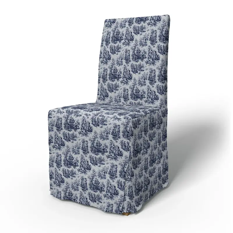 Ikea - Henriksdal Dining Chair Cover Long Skirt With Box Pleat Standard Model Dark Blue Boucl Texture - Bemz