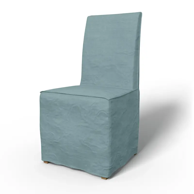 Ikea - Henriksdal Dining Chair Cover Long Skirt With French Seams Standard Model Dusty Blue Linen - Bemz