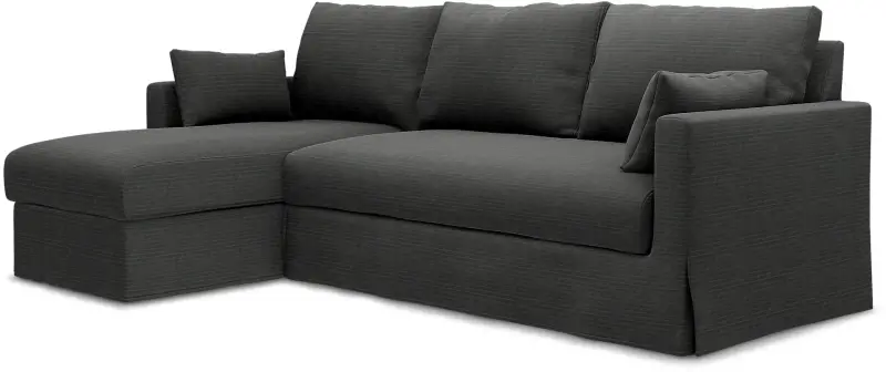 This Bemz cover fits IKEA Hyltarp 3-seater sofa with chaise longue, left (262 cm wide) and it includes 8 pieces: 1 frame cover, 3 backrest cushion covers, 1 seat cushion cover, 1 chaise longue seat cover, 2 decorative cushion covers. This cover is made in the original fit from IKEA with a long skirt. The IKEA Hyltarp cover is easy to put on, no assembly is required. Fitting instructions: Remove the original IKEA slipcover before fitting the Bemz cover.