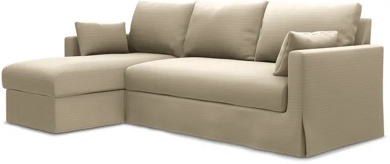 This Bemz cover fits IKEA Hyltarp 3-seater sofa with chaise longue, left (262 cm wide) and it includes 8 pieces: 1 frame cover, 3 backrest cushion covers, 1 seat cushion cover, 1 chaise longue seat cover, 2 decorative cushion covers. This cover is made in the original fit from IKEA with a long skirt. The IKEA Hyltarp cover is easy to put on, no assembly is required. Fitting instructions: Remove the original IKEA slipcover before fitting the Bemz cover.