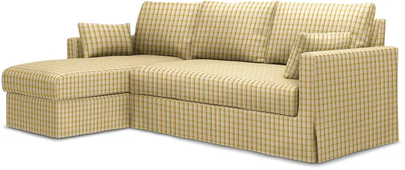 Ikea - Hyltarp 3-seater Sofa With Chaise Longue Left Picnic Check Sun Yellow Linen - Bemz