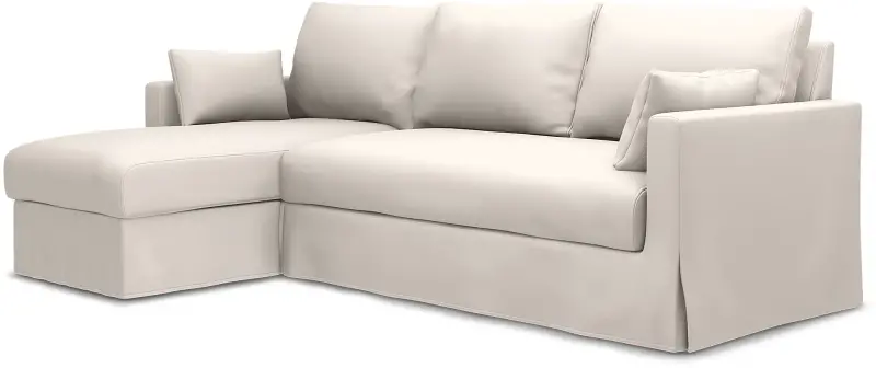 This Bemz cover fits IKEA Hyltarp 3-seater sofa with chaise longue, left (262 cm wide) and it includes 8 pieces: 1 frame cover, 3 backrest cushion covers, 1 seat cushion cover, 1 chaise longue seat cover, 2 decorative cushion covers. This cover is made in the original fit from IKEA with a long skirt. The IKEA Hyltarp cover is easy to put on, no assembly is required. Fitting instructions: Remove the original IKEA slipcover before fitting the Bemz cover.