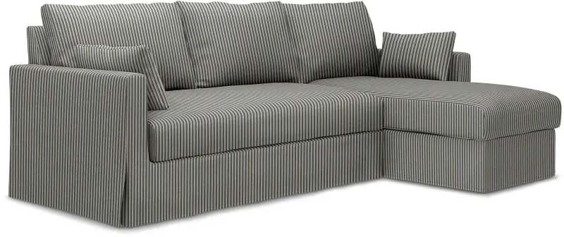 This Bemz cover fits IKEA Hyltarp 3-seater sofa with chaise longue, right (262 cm wide) and it includes 8 pieces: 1 frame cover, 3 backrest cushion covers, 1 seat cushion cover, 1 chaise longue seat cover, 2 decorative cushion covers. This cover is made in the original fit from IKEA with a long skirt. The IKEA Hyltarp cover is easy to put on, no assembly is required. Fitting instructions: Remove the original IKEA slipcover before fitting the Bemz cover.