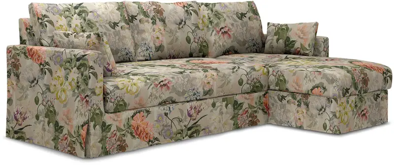We have been looking around for a while, and we really love this Ikea - Hyltarp 3-seater Sofa With Chaise Longue Right Delft Flower - Tuberose Linen - Bemz.