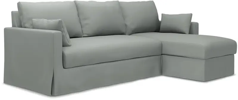 This Bemz cover fits IKEA Hyltarp 3-seater sofa with chaise longue, right (262 cm wide) and it includes 8 pieces: 1 frame cover, 3 backrest cushion covers, 1 seat cushion cover, 1 chaise longue seat cover, 2 decorative cushion covers. This cover is made in the original fit from IKEA with a long skirt. The IKEA Hyltarp cover is easy to put on, no assembly is required. Fitting instructions: Remove the original IKEA slipcover before fitting the Bemz cover.