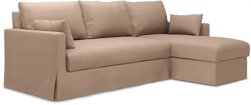 This Bemz cover fits IKEA Hyltarp 3-seater sofa with chaise longue, right (262 cm wide) and it includes 8 pieces: 1 frame cover, 3 backrest cushion covers, 1 seat cushion cover, 1 chaise longue seat cover, 2 decorative cushion covers. This cover is made in the original fit from IKEA with a long skirt. The IKEA Hyltarp cover is easy to put on, no assembly is required. Fitting instructions: Remove the original IKEA slipcover before fitting the Bemz cover.