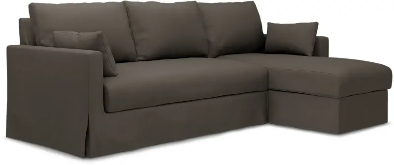 This Bemz cover fits IKEA Hyltarp 3-seater sofa with chaise longue, right (262 cm wide) and it includes 8 pieces: 1 frame cover, 3 backrest cushion covers, 1 seat cushion cover, 1 chaise longue seat cover, 2 decorative cushion covers. This cover is made in the original fit from IKEA with a long skirt. The IKEA Hyltarp cover is easy to put on, no assembly is required. Fitting instructions: Remove the original IKEA slipcover before fitting the Bemz cover.
