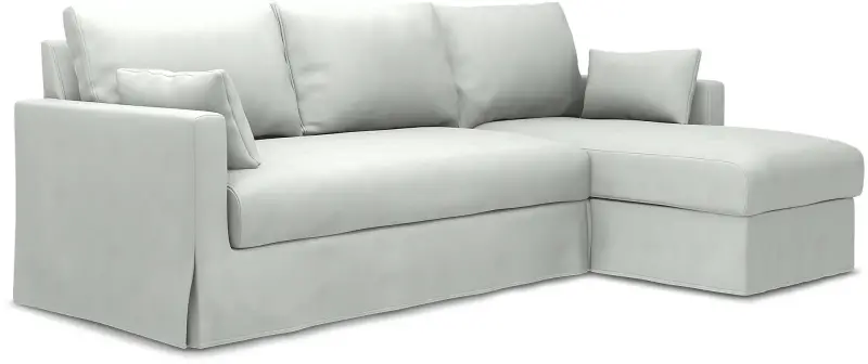 This Bemz cover fits IKEA Hyltarp 3-seater sofa with chaise longue, right (262 cm wide) and it includes 8 pieces: 1 frame cover, 3 backrest cushion covers, 1 seat cushion cover, 1 chaise longue seat cover, 2 decorative cushion covers. This cover is made in the original fit from IKEA with a long skirt. The IKEA Hyltarp cover is easy to put on, no assembly is required. Fitting instructions: Remove the original IKEA slipcover before fitting the Bemz cover.