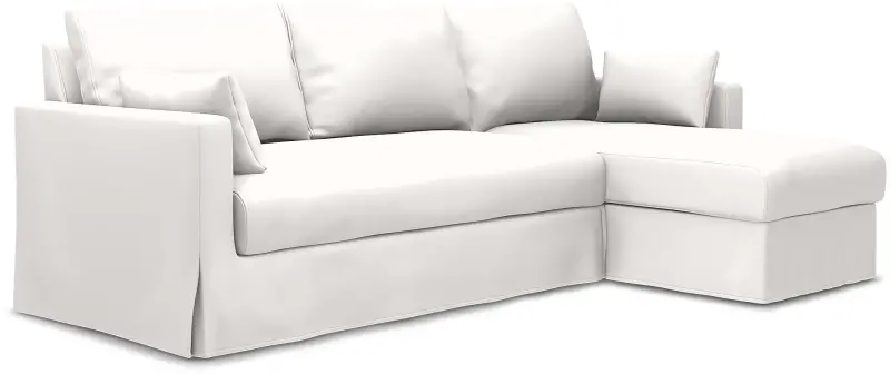 This Bemz cover fits IKEA Hyltarp 3-seater sofa with chaise longue, right (262 cm wide) and it includes 8 pieces: 1 frame cover, 3 backrest cushion covers, 1 seat cushion cover, 1 chaise longue seat cover, 2 decorative cushion covers. This cover is made in the original fit from IKEA with a long skirt. The IKEA Hyltarp cover is easy to put on, no assembly is required. Fitting instructions: Remove the original IKEA slipcover before fitting the Bemz cover.