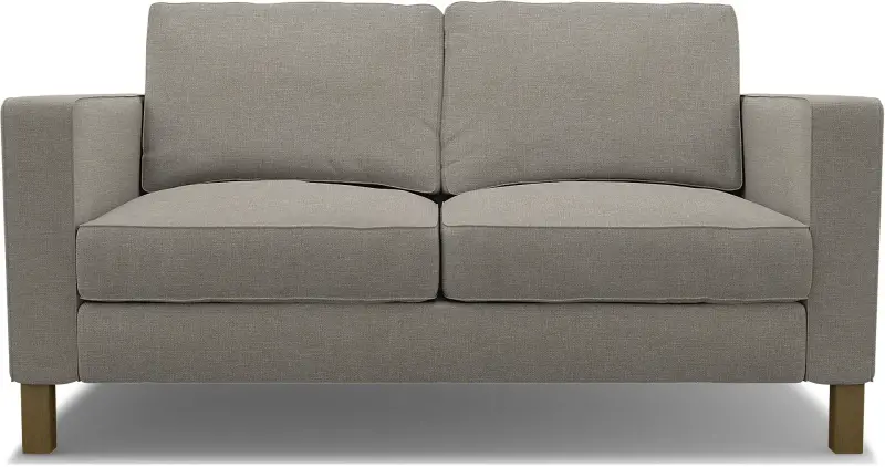 This cover includes 7 pieces: 1 frame cover, 2 armrest covers, 2 seat cushion covers and 2 backrest covers. It can only be used on the IKEA Karlstad 2 seater sofa (165 cm wide). If your sofa is bigger, see the IKEA Karlstad 3 seater sofa. If you can pull a bed out of your sofa, see the Karlstad sofa bed. This cover cannot be used on leather sofas. The cushion covers are reversible and secured with zippers. Assembly required.