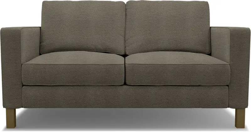 This cover includes 7 pieces: 1 frame cover, 2 armrest covers, 2 seat cushion covers and 2 backrest covers. It can only be used on the IKEA Karlstad 2 seater sofa (165 cm wide). If your sofa is bigger, see the IKEA Karlstad 3 seater sofa. If you can pull a bed out of your sofa, see the Karlstad sofa bed. This cover cannot be used on leather sofas. The cushion covers are reversible and secured with zippers. Assembly required.
