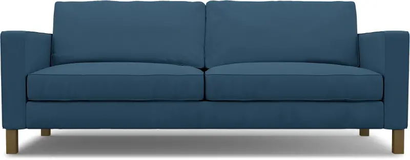 This cover includes 7 pieces: 1 frame cover, 2 armrest covers, 2 seat cushion covers and 2 backrest covers. It can only be used on the IKEA Karlstad 3 seater sofa (205 cm wide). If your sofa is smaller, see the IKEA Karlstad 2 seater sofa. If you can pull a bed out of your sofa, see the Karlstad sofa bed. This cover cannot be used on leather sofas. The cushion covers are reversible and secured with zippers. Assembly required.