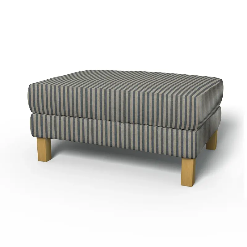 Ikea - Karlstad Footstool Cover Dark Blue Natural Linen - Bemz