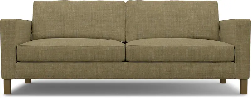 This cover includes 7 pieces: 1 frame cover, 2 armrest covers, 2 seat cushion covers and 2 backrest covers. It can only be used on the IKEA Karlstad sofa bed. The cushion covers are reversible and secured with zippers. The cover for the frame is sewn in 1 piece and slips on and off easily without removing the armrests.