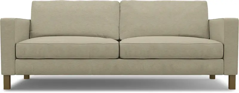 This cover includes 7 pieces: 1 frame cover, 2 armrest covers, 2 seat cushion covers and 2 backrest covers. It can only be used on the IKEA Karlstad sofa bed. The cushion covers are reversible and secured with zippers. The cover for the frame is sewn in 1 piece and slips on and off easily without removing the armrests.