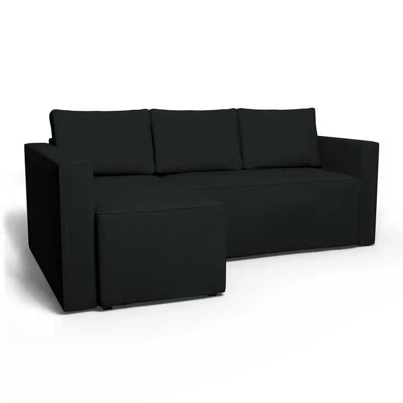 Ikea - M Nstad Sofa Bed With Left Chaise Cover Jet Black Cotton - Bemz