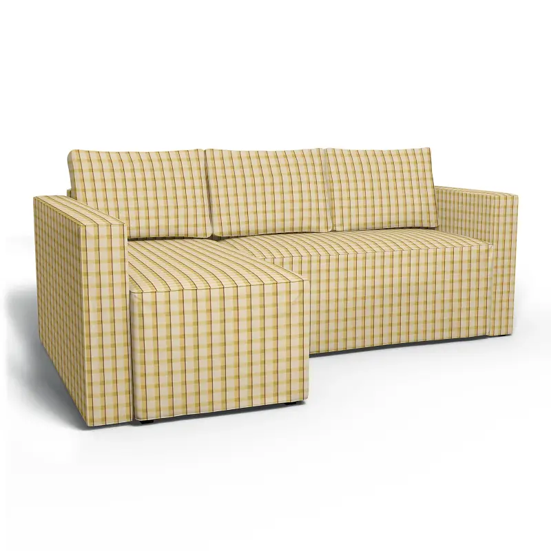 Ikea - M Nstad Sofa Bed With Left Chaise Cover Picnic Check Sun Yellow Linen - Bemz