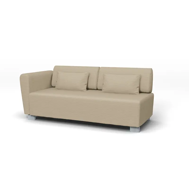 This cover includes 7 pieces: 1 frame cover, 1 armrest cover, 2 backrest covers, 1 cover for the back metal support frames and 2 decorative cushion covers. The IKEA Mysinge sofa seat / base measures 170cm long and was sold from 2004-2009. Now discontinued at IKEA.