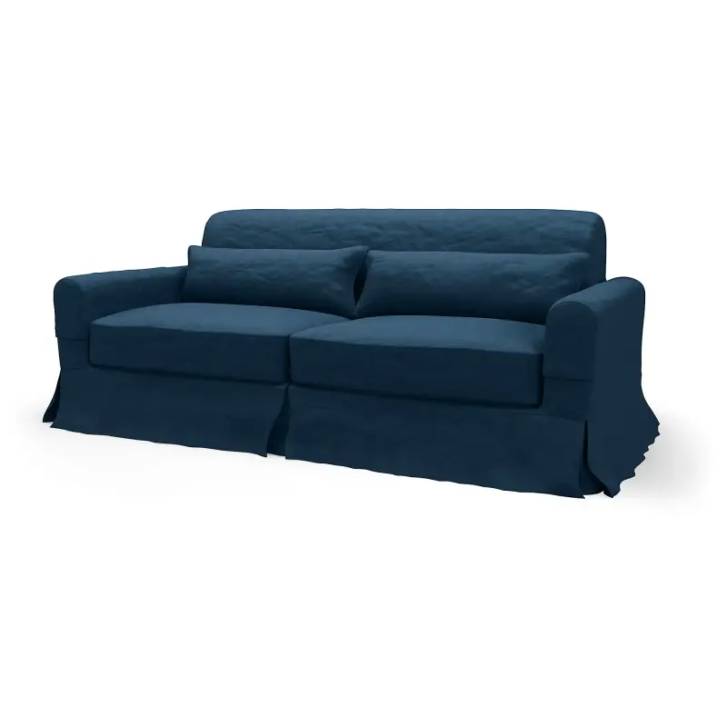 This cover includes 5 pieces: 1 frame cover, 2 seat cushion covers and 2 decorative cushions. It will only fit the discontinued IKEA Nikkala 3 seater sofa sold from 1998-2006. Bemz Loose Fit covers are designed to hang looser than our Regular Fit and have a distinctive floor-length drape. Lovely ties are used instead of zippers.