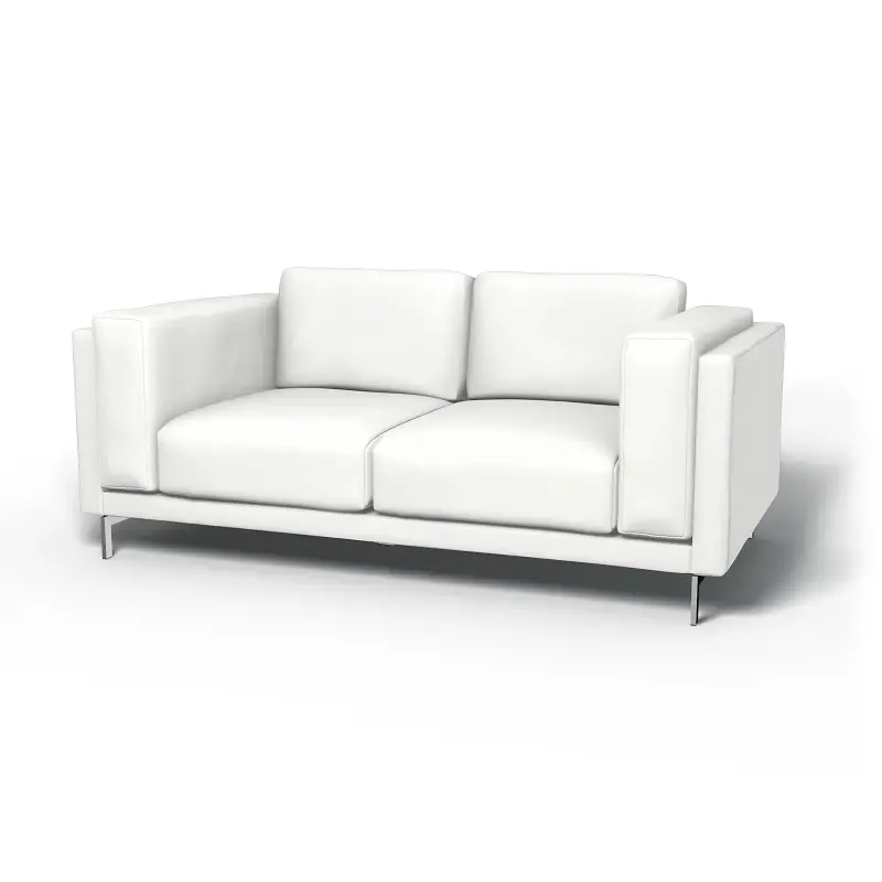 This cover includes 7 pieces: 1 frame cover, 2 seat covers, 2 back covers and 2 inner armrest covers. All cushion coveres are reversible. The cover will only fit the Nockeby 2 seater sofa from IKEA and not similar models. Be careful not to confuse with the IKEA Norsborg, which looks and sounds similar. You can tell you have a Nockeby if the armrests are enclosed within the sofa frame. Sold at IKEA from 2015-present.