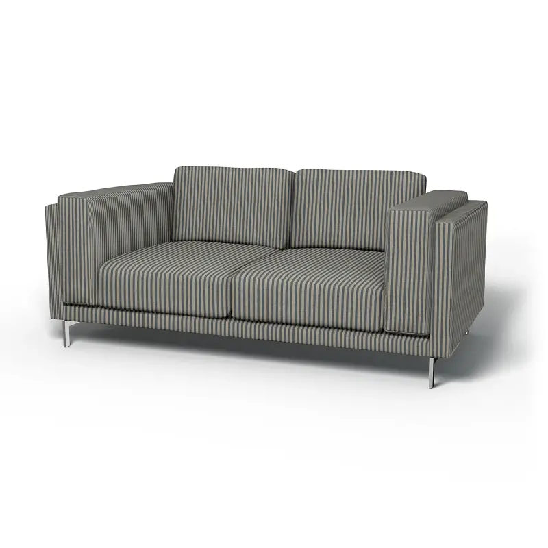 This cover includes 7 pieces: 1 frame cover, 2 seat covers, 2 back covers and 2 inner armrest covers. All cushion coveres are reversible. The cover will only fit the Nockeby 2 seater sofa from IKEA and not similar models. Be careful not to confuse with the IKEA Norsborg, which looks and sounds similar. You can tell you have a Nockeby if the armrests are enclosed within the sofa frame. Sold at IKEA from 2015-present.