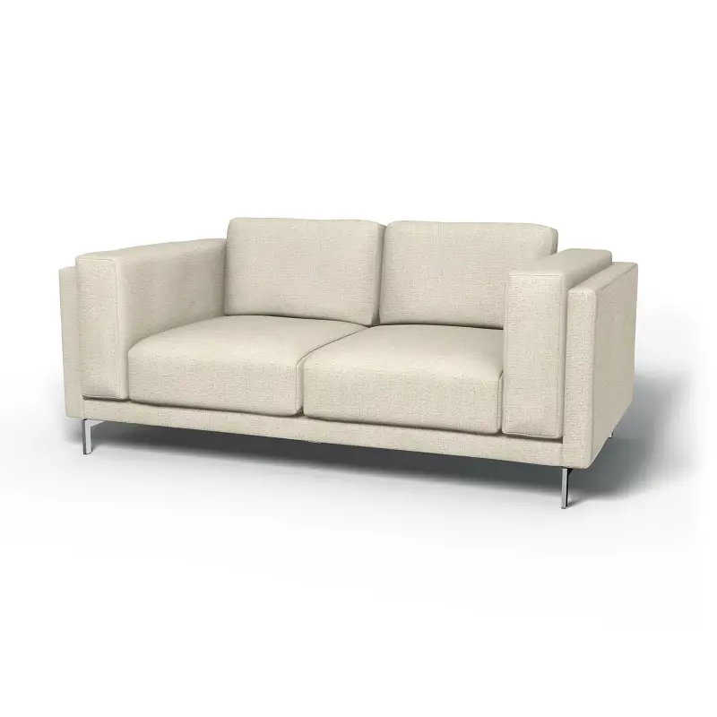 This cover includes 7 pieces: 1 frame cover, 2 seat covers, 2 back covers and 2 inner armrest covers. All cushion coveres are reversible. The cover will only fit the Nockeby 2 seater sofa from IKEA and not similar models. Be careful not to confuse with the IKEA Norsborg, which looks and sounds similar. You can tell you have a Nockeby if the armrests are enclosed within the sofa frame. Sold at IKEA from 2015-present.