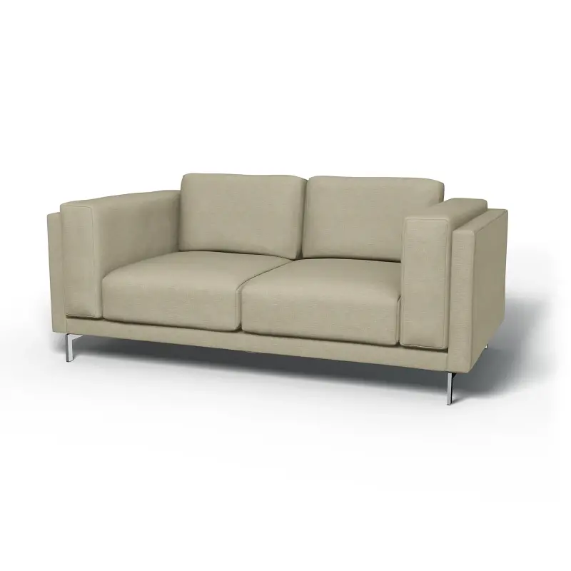 This cover includes 7 pieces: 1 frame cover, 2 seat covers, 2 back covers and 2 inner armrest covers. All cushion coveres are reversible. The cover will only fit the Nockeby 2 seater sofa from IKEA and not similar models. Be careful not to confuse with the IKEA Norsborg, which looks and sounds similar. You can tell you have a Nockeby if the armrests are enclosed within the sofa frame. Sold at IKEA from 2015-present.