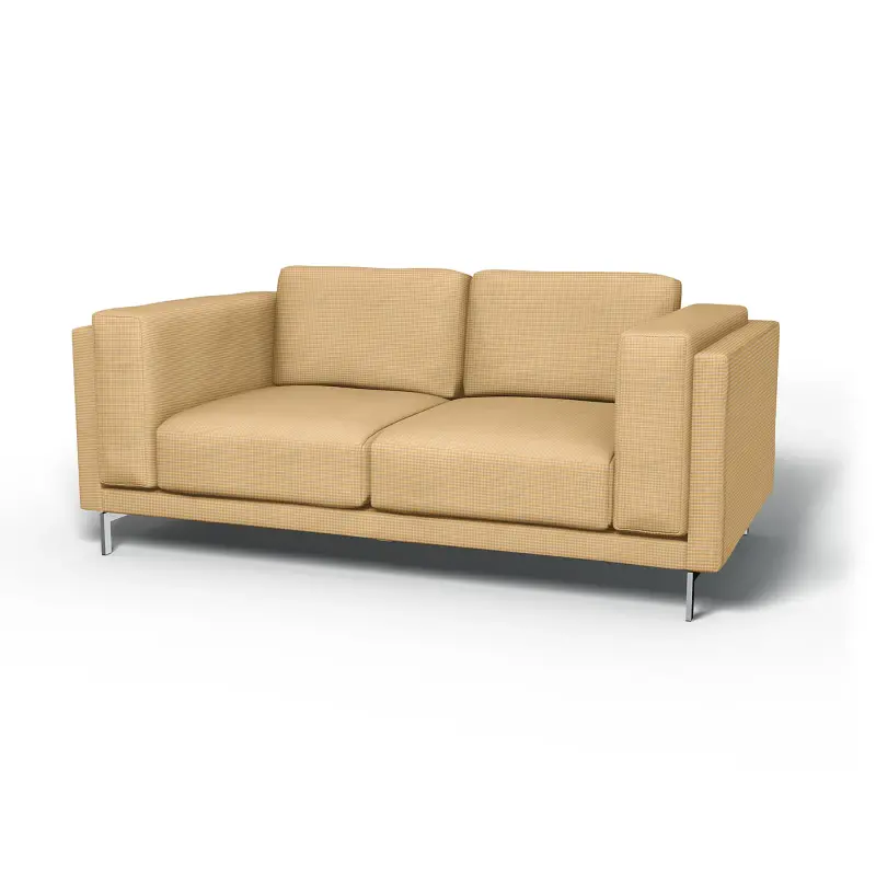 This cover includes 7 pieces: 1 frame cover, 2 seat covers, 2 back covers and 2 inner armrest covers. All cushion coveres are reversible. The cover will only fit the Nockeby 2 seater sofa from IKEA and not similar models. Be careful not to confuse with the IKEA Norsborg, which looks and sounds similar. You can tell you have a Nockeby if the armrests are enclosed within the sofa frame. Sold at IKEA from 2015-present.
