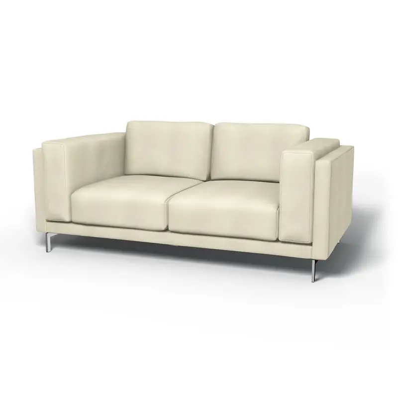 This cover includes 7 pieces: 1 frame cover, 2 seat covers, 2 back covers and 2 inner armrest covers. All cushion coveres are reversible. The cover will only fit the Nockeby 2 seater sofa from IKEA and not similar models. Be careful not to confuse with the IKEA Norsborg, which looks and sounds similar. You can tell you have a Nockeby if the armrests are enclosed within the sofa frame. Sold at IKEA from 2015-present.