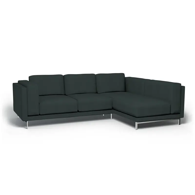 Ikea - Nockeby 3 Seat Sofa With Right Chaise Cover Graphite Grey Cotton - Bemz