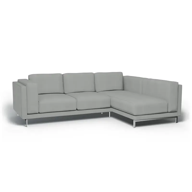 Ikea - Nockeby 3 Seat Sofa With Right Chaise Cover Silver Grey Cotton - Bemz