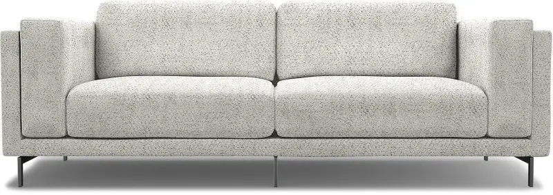 This cover includes 7 pieces: 1 frame cover, 2 seat covers, 2 back covers and 2 inner armrest covers. All cushion covers are reversible. The cover will only fit the Nockeby 3 seater sofa from IKEA and not similar models. Be careful not to confuse with the IKEA Norsborg, which looks and sounds similar. You can tell you have a Nockeby if the armrests are enclosed within the sofa frame. Sold at IKEA from 2015-present.